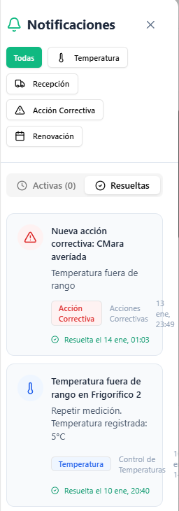 recibe alertas de medidas correctoras y notificaciones para registrar la temperatura, etc